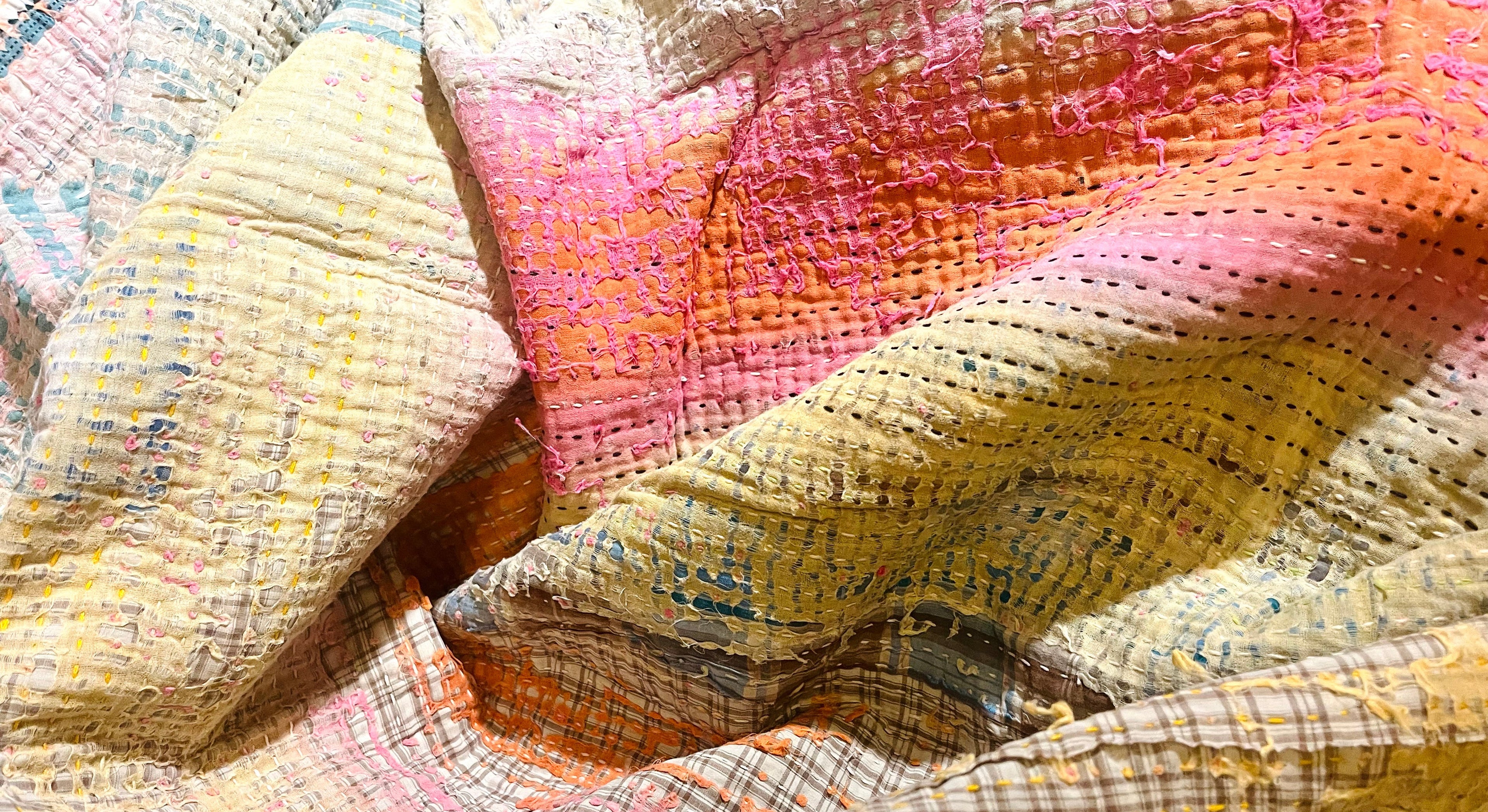 Chaque VESTE Hindima est une pièce unique, confectionnée à partir de couvertures kantha...