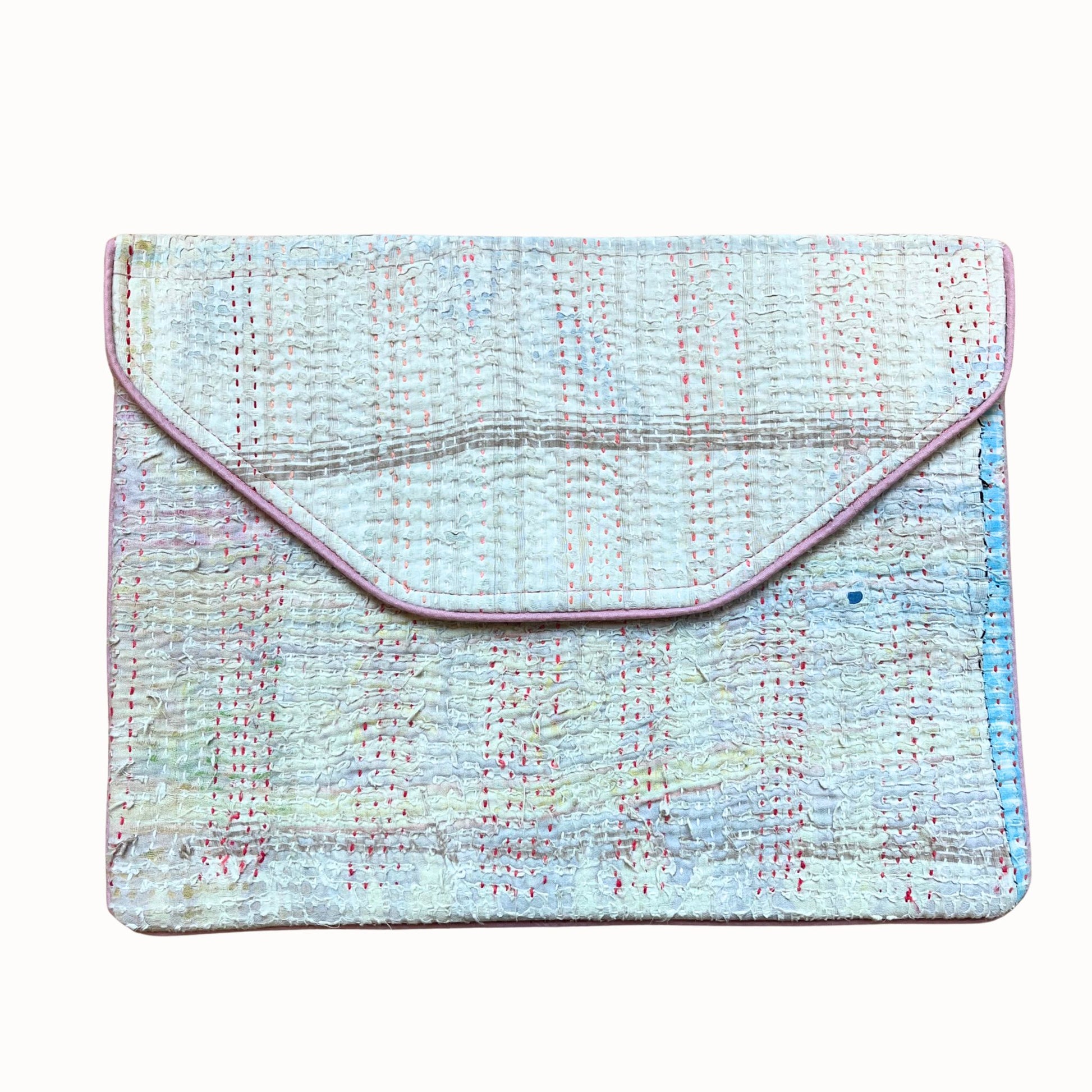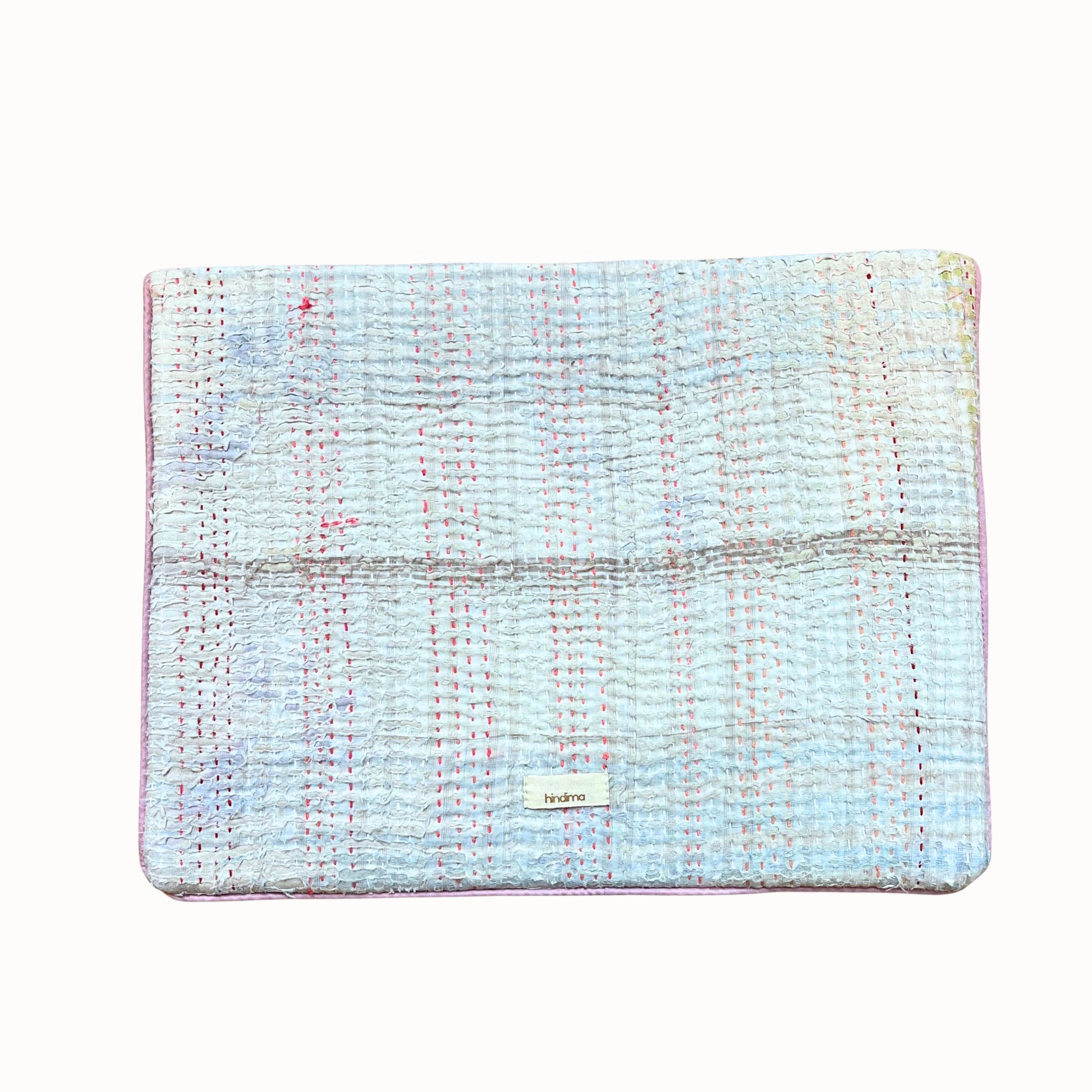 Housse d’ordinateur upcyclée, réalisée à partir de chutes de kantha, tissu vintage indien.