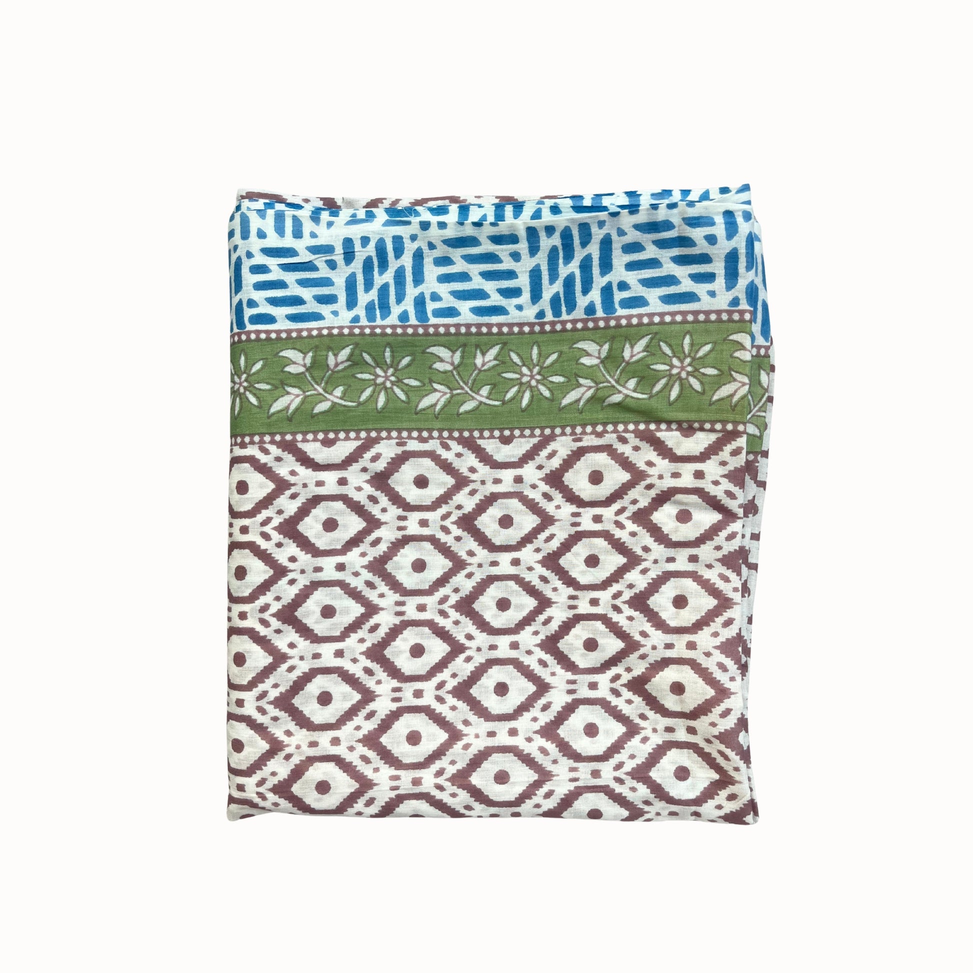 Paréo en voile de coton, imprimé à la main au tampon de bois. Une pièce artisanale, douce et légère, parfaite pour l’été. À mettre en nappe l'hiver, si l'été te manque ...