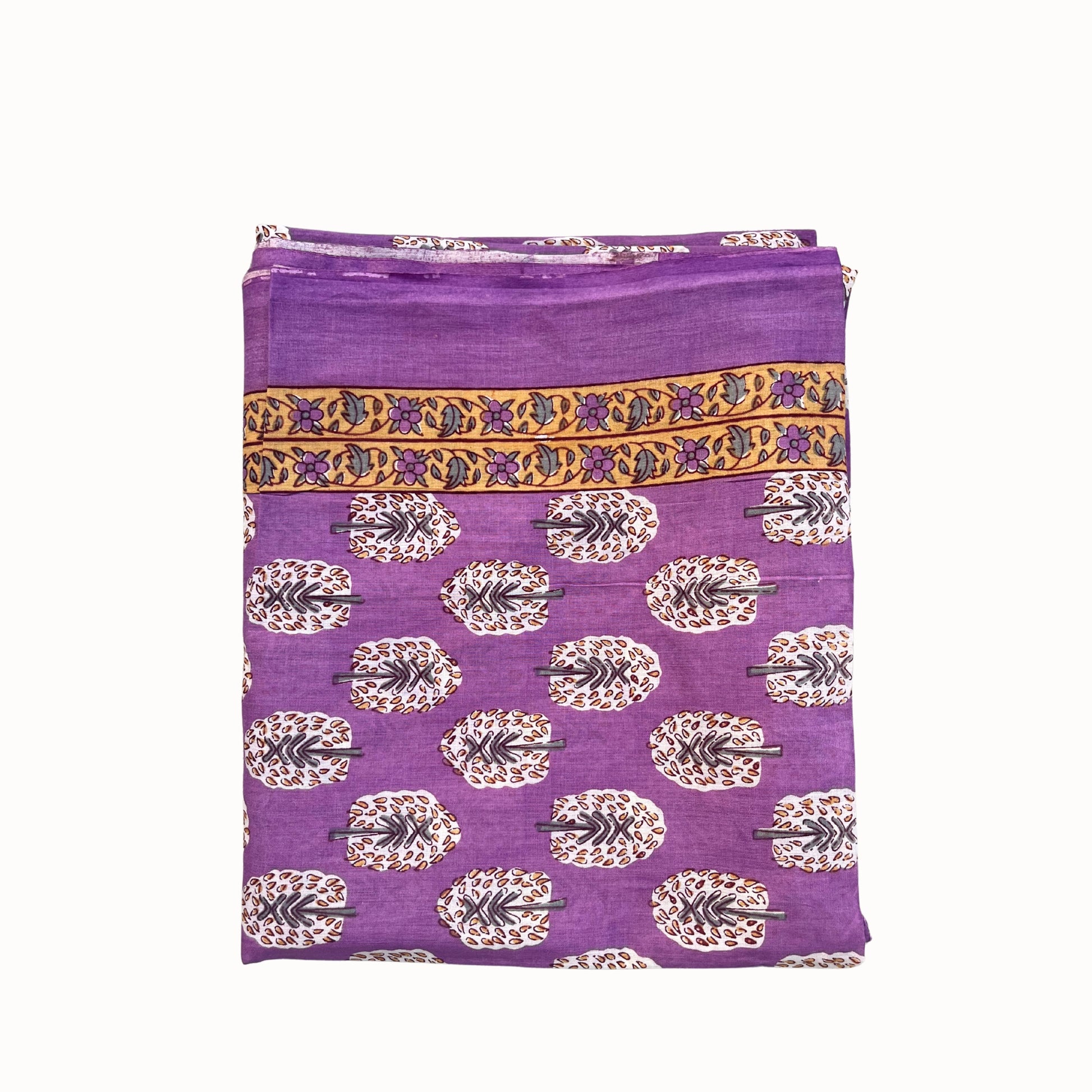 Paréo violet en voile de coton, imprimé à la main au tampon de bois. Une pièce artisanale, douce et légère, parfaite pour l’été.