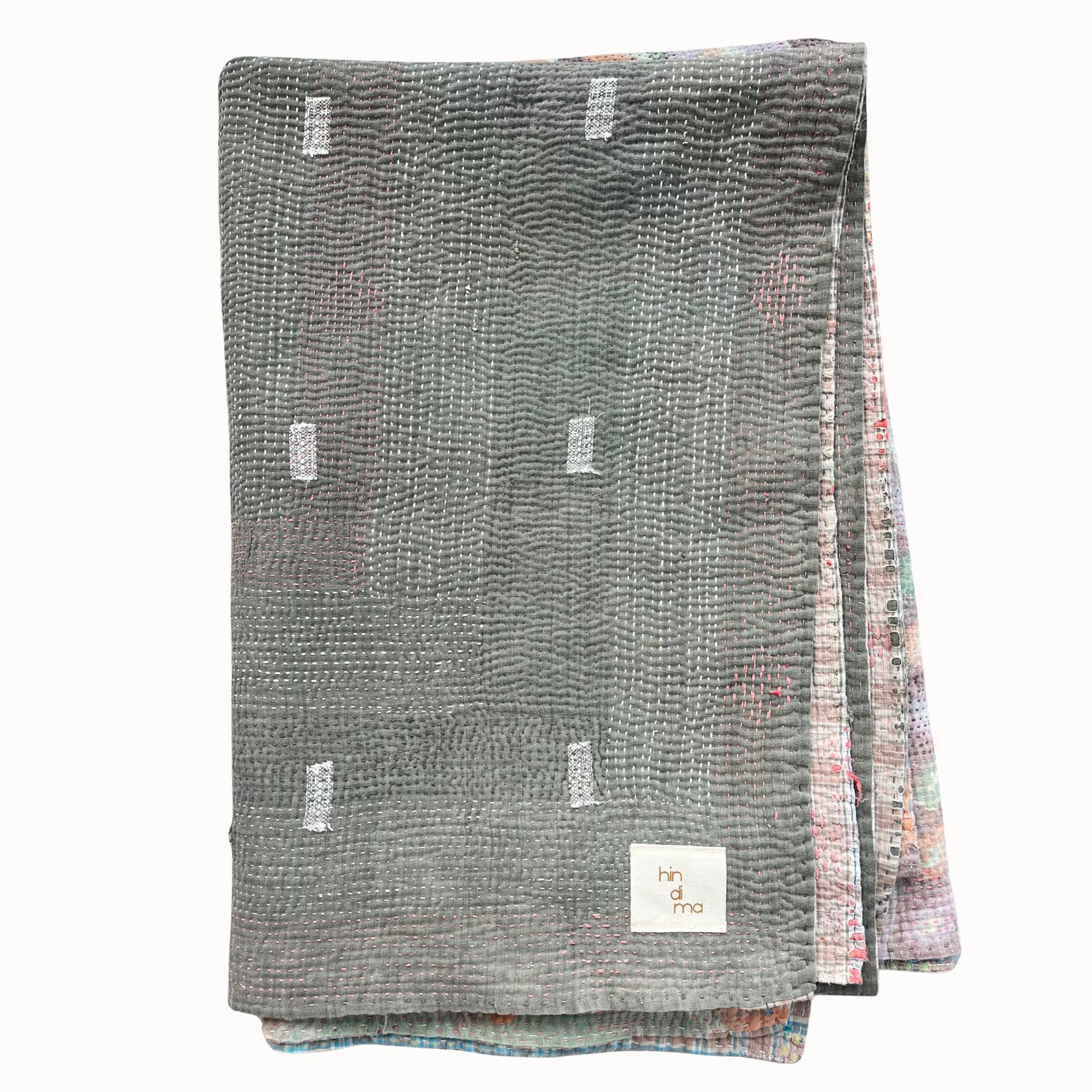 Couverture Kantha vintage, réversible, brodée à la main. Elle apporte une touche authentique et colorée à votre canapé ou au pied du lit.