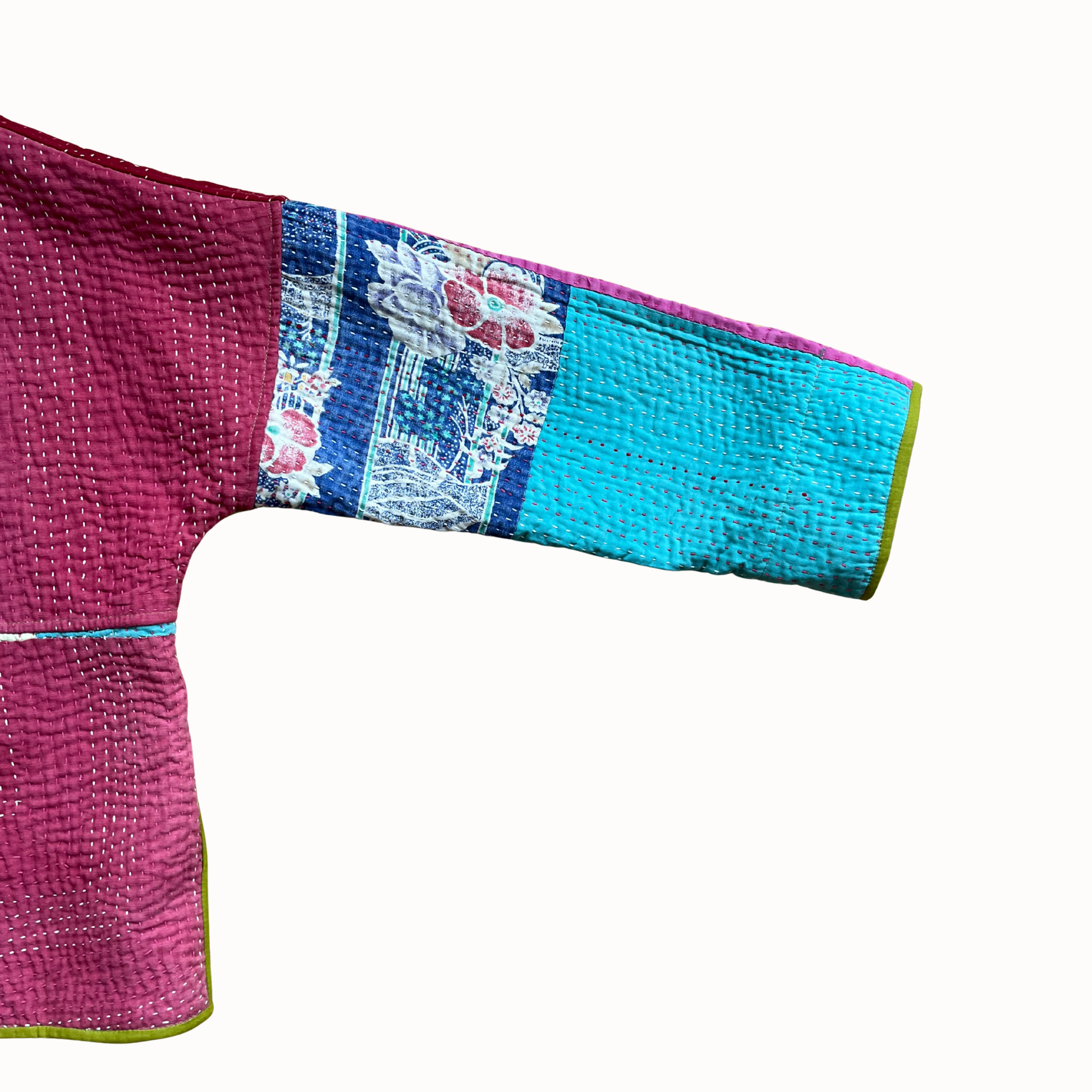 Veste réversible unique, créée à partir d'un Kantha, une couverture indienne vintage brodée à la main. Bohème, colorée et facile à porter.